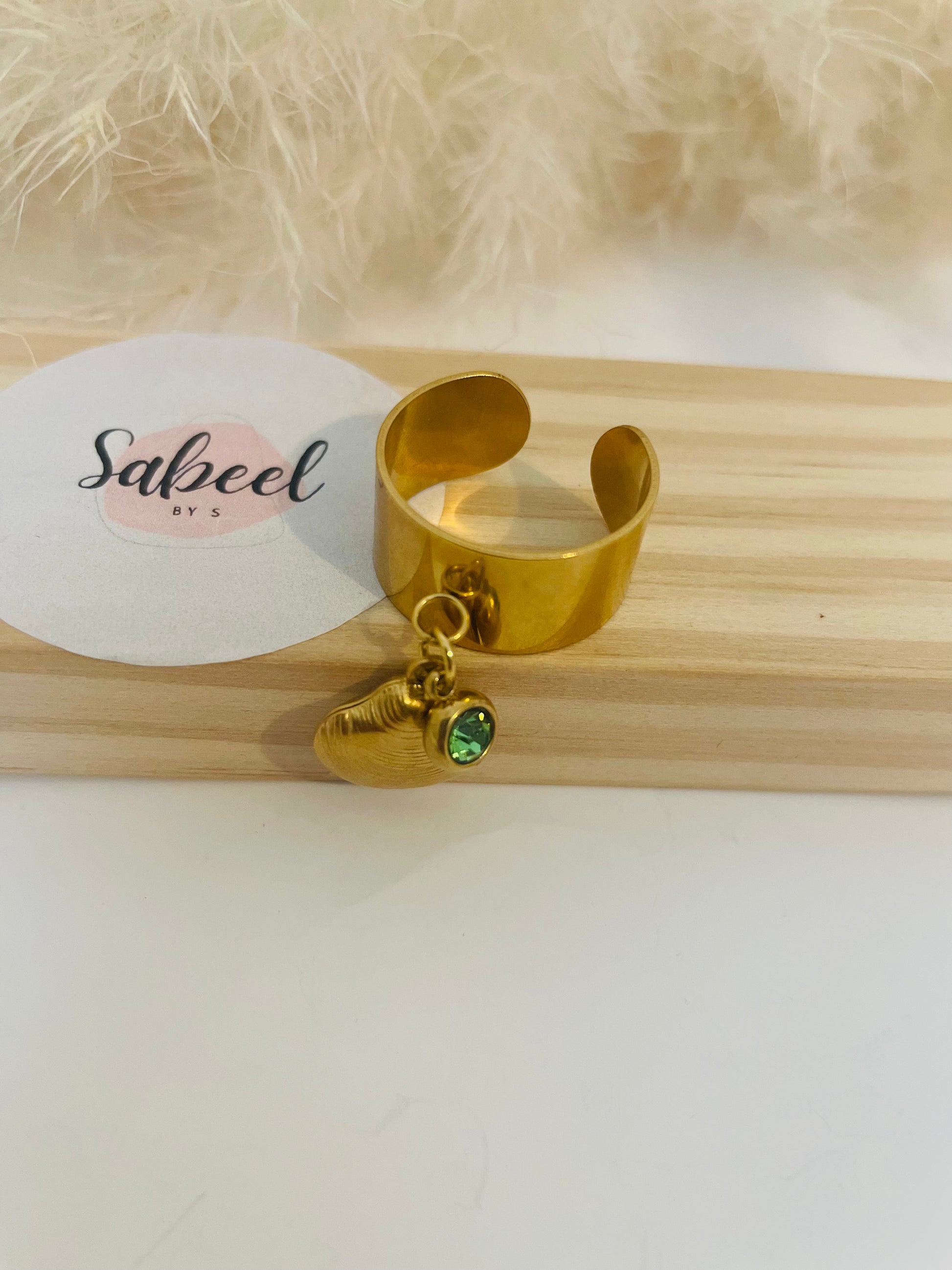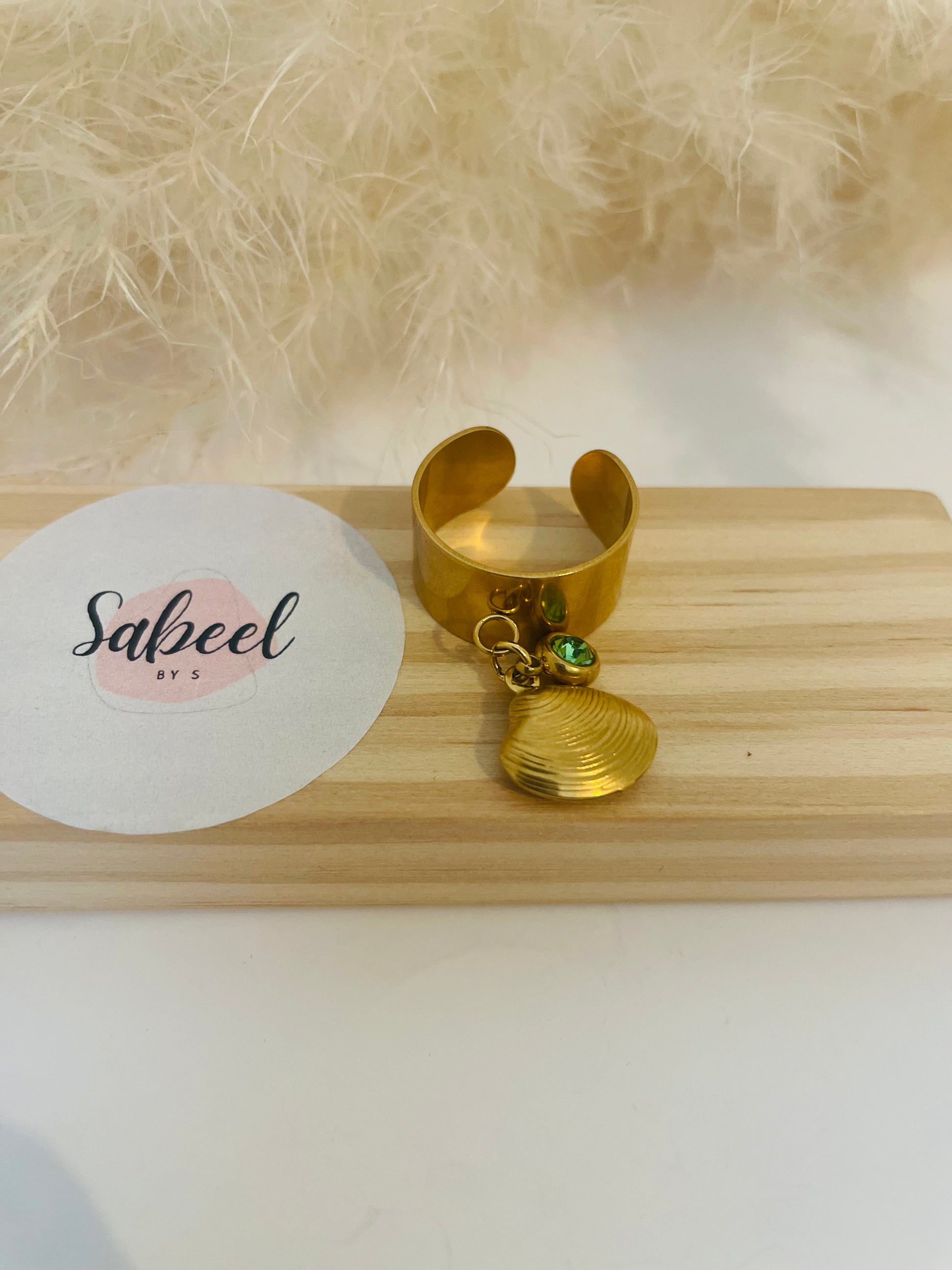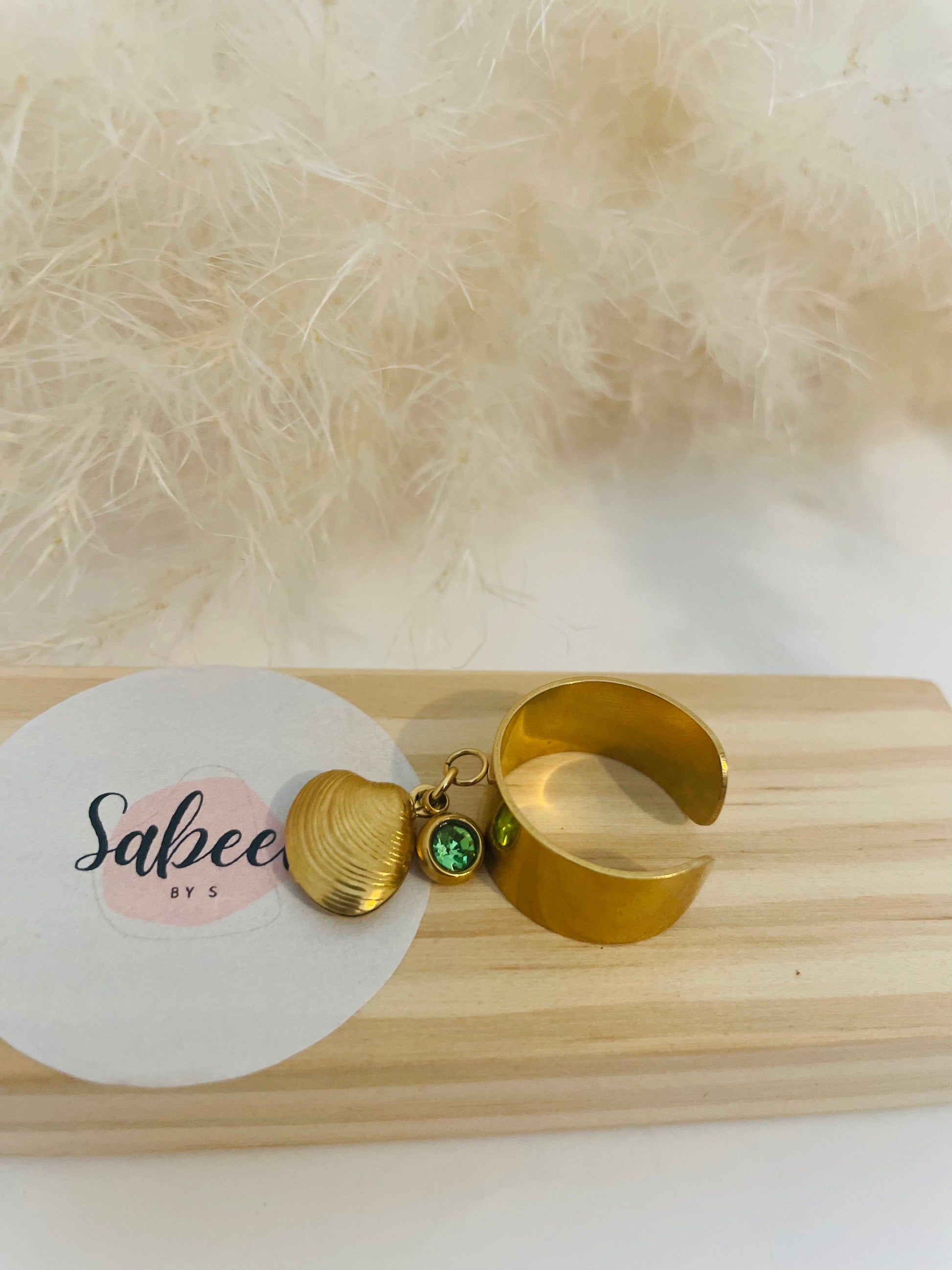 Bague double charms Coquillage vert