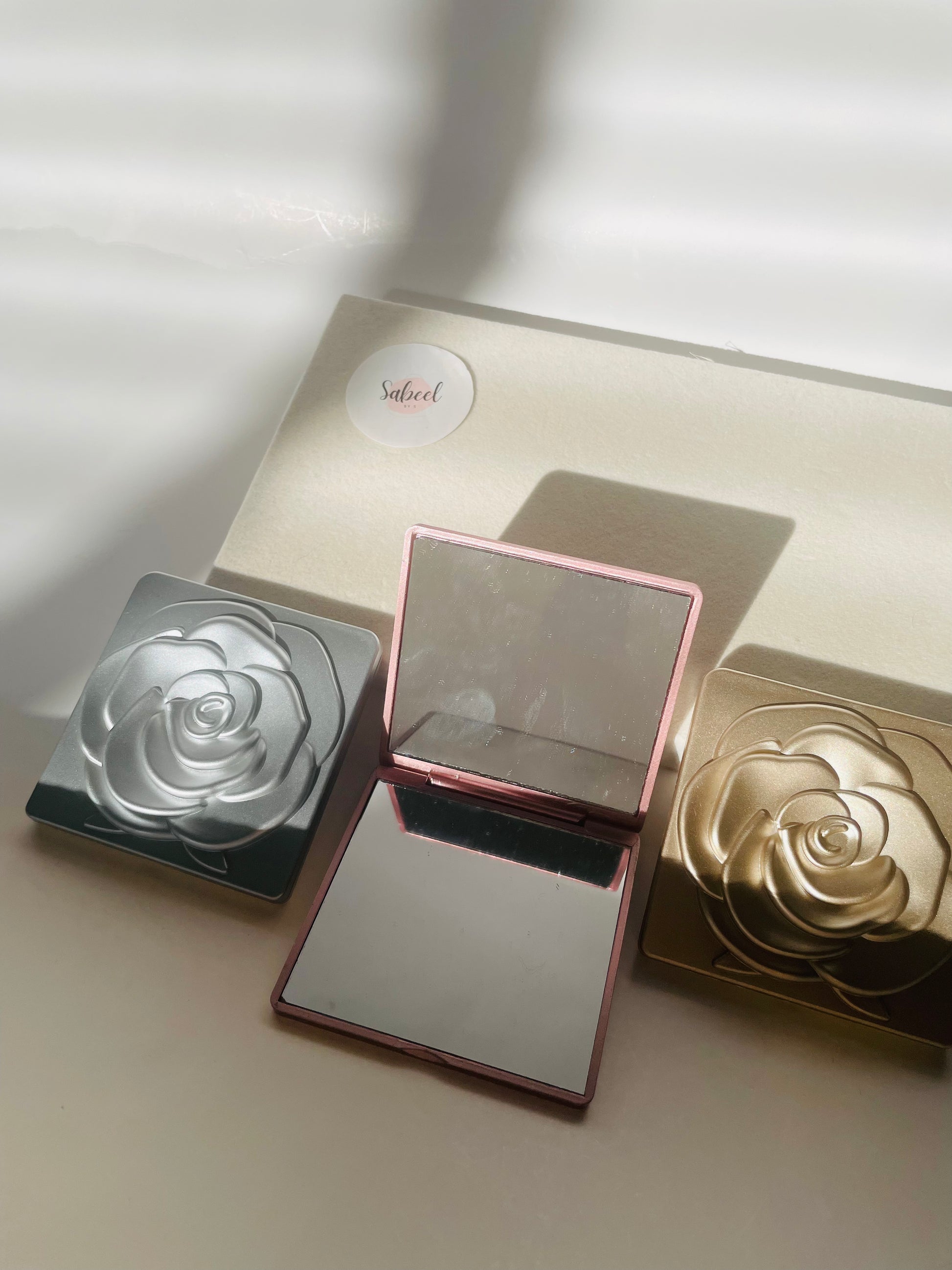 Miroir de poche pliable avec motif fleur